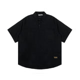 Kemeja kerah lengan pendek dengan pola Boxy Oversized berbahan Raw Cotton yang lembut, solid, tidak panas serta tahan lama.